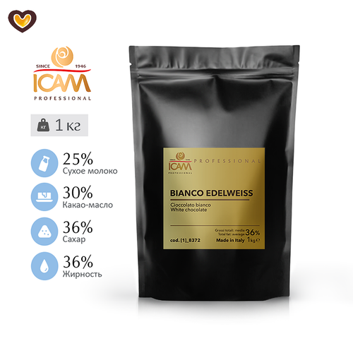 Шоколад белый ICAM Edelweiss, пак 1 кг, Италия