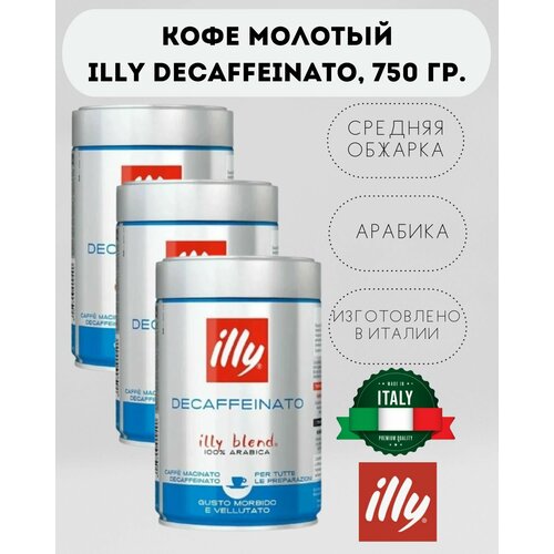 Кофе молотый illy DECAFFEINATO (DECAF) 3 шт по 250 гр. (Без кофеина)