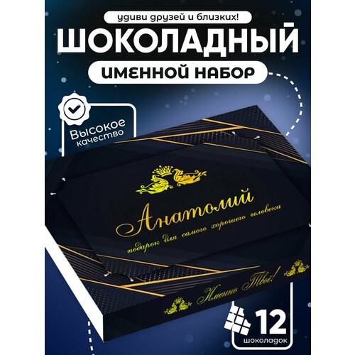 Набор шоколада "Анатолий", подарочный, именной, молочный, 12 мини-плиток