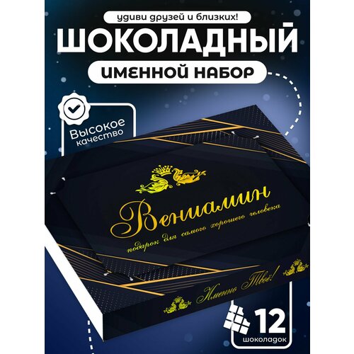 Набор шоколада "Вениамин", подарочный, именной, молочный, 12 мини-плиток