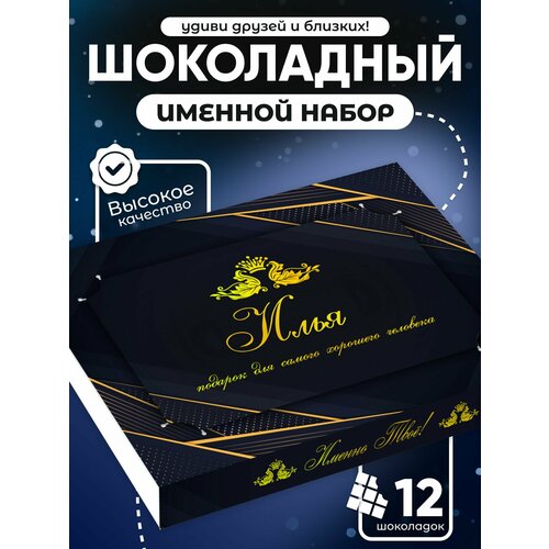 Набор шоколада "Илья", подарочный, именной, молочный, 12 мини-плиток
