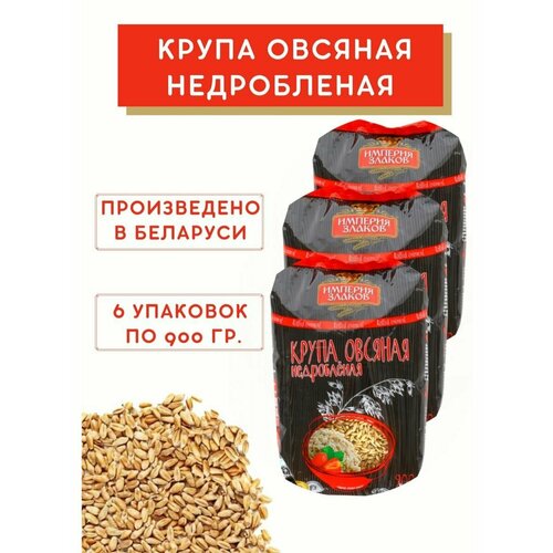 Крупа овсяная недробленая цельнозерновая "Империя Злаков" 6 упак. по 900 гр.