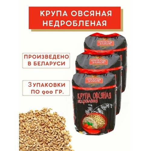 "Крупа Овсяная недробленая цельнозерновая" от бренда "Империя Злаков", 3 упак. по 900 грамм