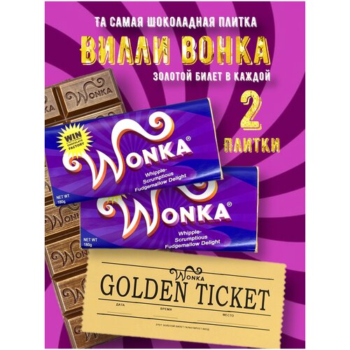 Шоколад WONKA. 2 шоколадные плитки Вилли Вонка с золотым билетом 180 грамм микс (белая+молочная)