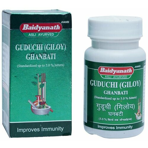 Гудучи Гилой Гхан Вати для иммунитета, жарпонижающее, выводит шлаки и токсины Guduchi Giloy Ghanbati Baidyanath