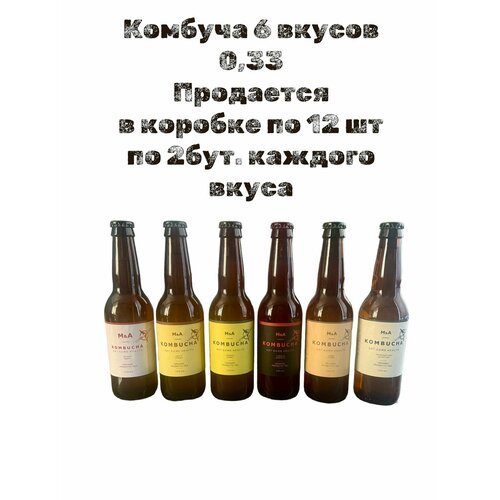 Комбуча 6 разных вкусов, набор в стекле, (12 х 0,33)