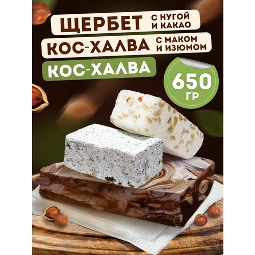 Восточные сладости (щербет с нугой и какао, кос-халва, кос-халва с маком и изюмом), 0,65 кг 64484
