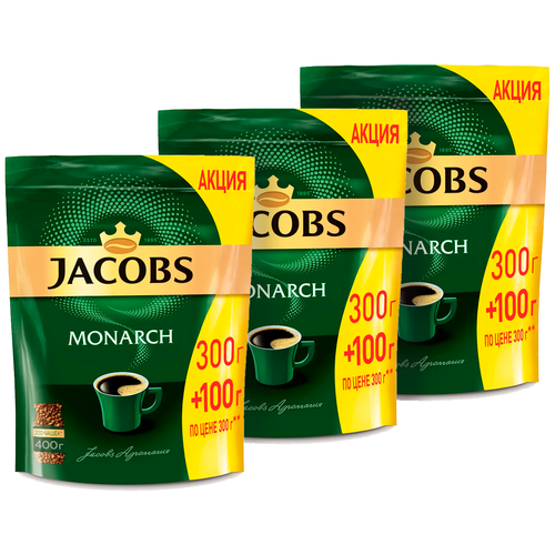 Растворимый кофе Jacobs Монарх 400 г, комплект 3 уп