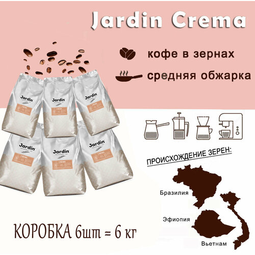 Зерновой кофе JARDIN Crema, коробка, 6 шт / 6 кг, средняя обжарка