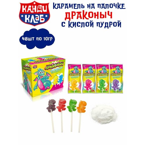 Карамель на палочке драконыч с кислой пудрой 48 шт по 10г
