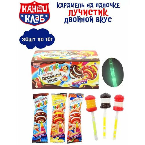 Карамель на неоновой палочке Лучистик ассорти двойной вкус, 30шт х 10г
