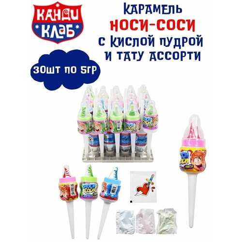 Карамель носи-соси кислая пудра и тату, ассорти 30 шт по 5 гр , Канди Клаб