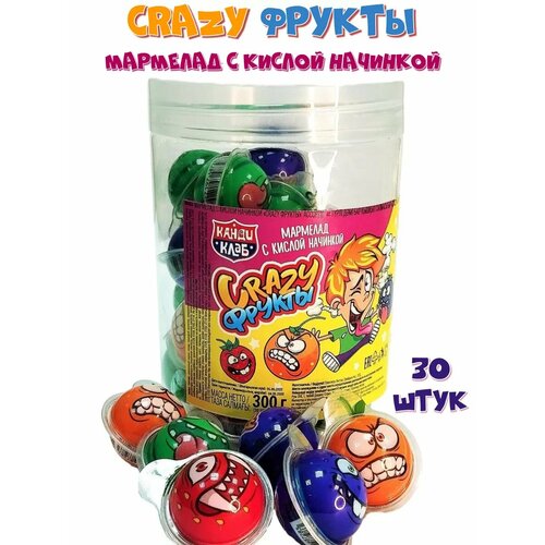Мармелад с кислой начинкой Crazy Фрукты, 30 штук по 10 грамм