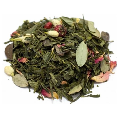 Купаж зеленого чая "Брусника премиум", 100гр / Настоящий листовой Китайский чай Сенча с брусникой и жасмином / витаминный сбор / чай для иммунитета