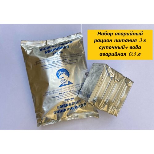 Набор Морской Аварийный Рацион 3 шт и вода Аварийная 0.5л