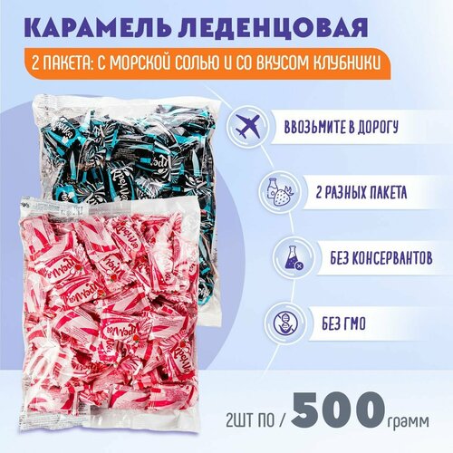 Карамель Кремка леденцовая с морской солью+ со вкусом клубники 2 шт по 500 грамм КДВ