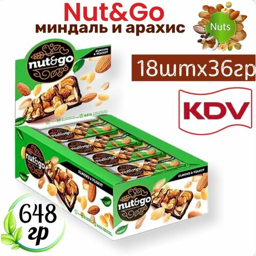 Ореховый батончик Nut&Go арахис, миндаль, арахисовая паста, 36 г, 10 шт.