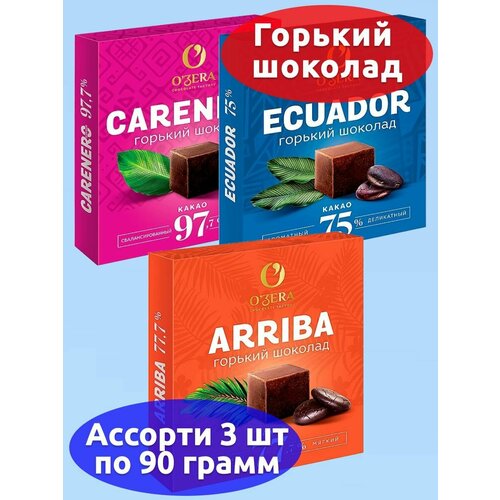 OZera, горький шоколад ассорти 3 вкуса, 3 штуки по 90 грамм, KDV