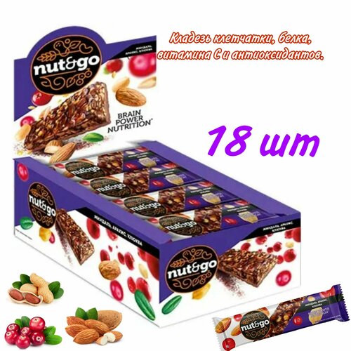 Nut&Go, батончик Миндаль, арахис, клюква, 50 г, 18 шт