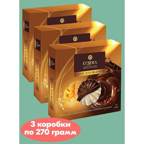 Ozera Зефир с манго в горьком шоколаде, 3 коробки по 270 грамм, КДВ