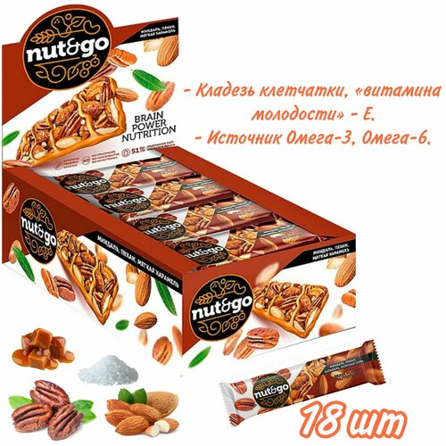 Nut&Go, батончик с миндалём, пеканом, карамелью, морской солью, 36 г, 18 шт