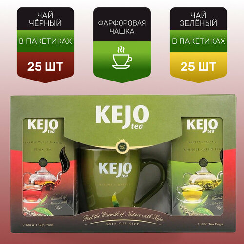 Набор чая подарочный: зеленый чай 25 шт, черный чай 25 шт, кружка