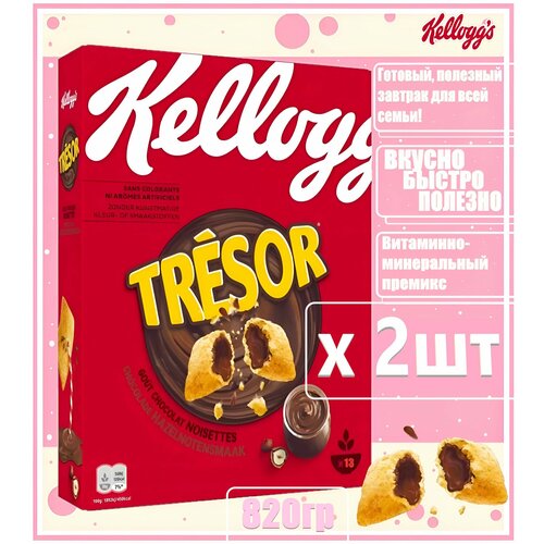 Готовый завтрак Kellogg’s Tresor Choc Трезор подушечки хрустящие с шоколадно-ореховой начинкой 2шт х 410 г