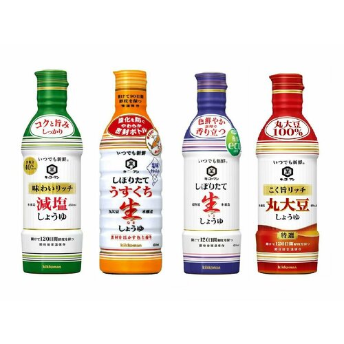 Японский соевый соус Kikkoman Особый с насыщенным вкусом и ароматом, Ичибан Даси с скумбрей, Устричный ароматный и Комбу Шою с ламинарией (4 штуки в наборе), 1800 мл, Япония
