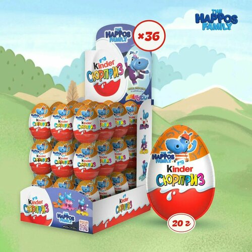 Шоколадное яйцо Kinder "The Happos Family", молочный шоколад, 36 штук