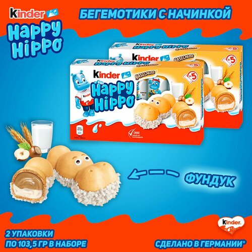 Шоколадно-молочное печенье Kinder Happy Hippo Hazelnut, с фундуком, 103,5 гр, 2 шт