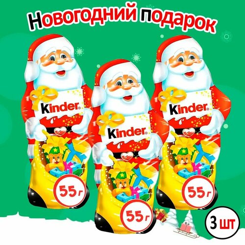Kinder шоколадная фигурка Деда Мороза на елку 55г 3 шт.