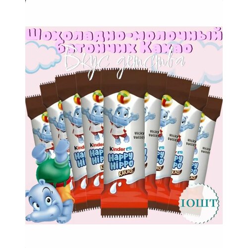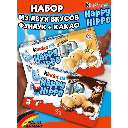 Батончики Kinder Happy Hippo какао и фундук, набор 2 упаковки по 5 штук.