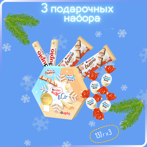 Новогодний подарочный набор кондитерских изделий в белом шоколаде Kinder & Co, 3 шт по 137 г