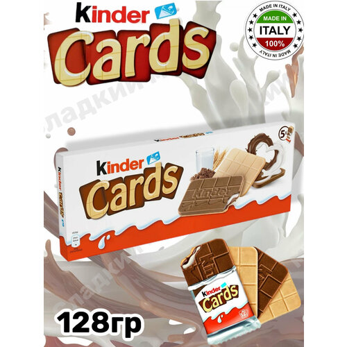 Печенье Kinder Cards, 128 г (в коробке 5 пачек по 2 печенья)