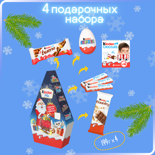 Новогодний подарочный набор кондитерских изделий Kinder Mix, 4 шт по 199 г