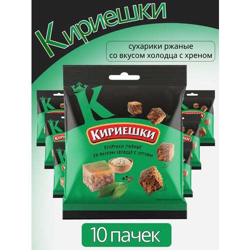 Сухарики KDV "Кириешки", ржано-пшеничные, вкус холодца и хрена, 40г, набор 10шт.