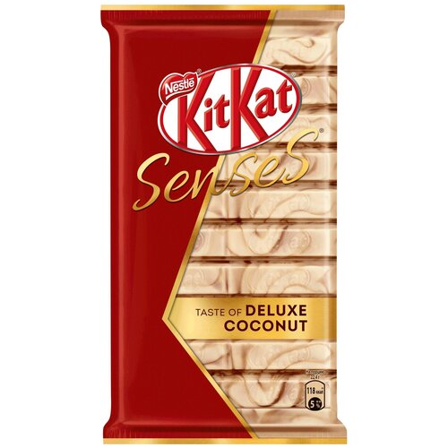 КITKAT SENSES TASTE DELUXE COCONUT Белый шоколад со вкусом кокоса и молочный шоколад со вкусом миндаля с хрустящей вафлей 112 г — кіткат