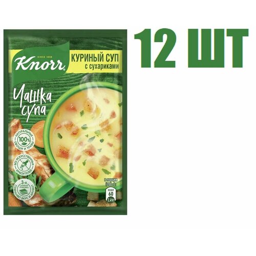 Суп быстрого приготовления, "Knorr. Чашка супа", "Куриный суп с сухариками", 16г 12 шт