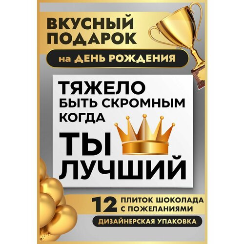 Подарочный набор мужчине на День Рождения шоколад "Тяжело быть скромным, когда ты лучший"