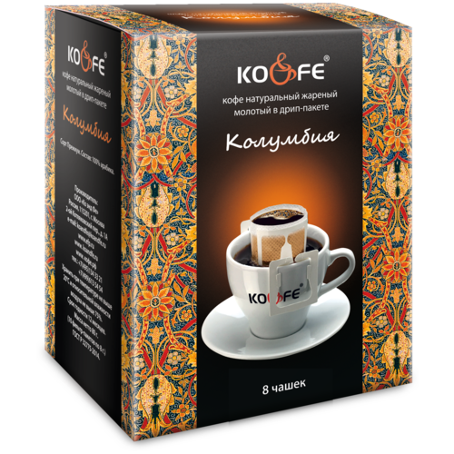 Молотый кофе KO&FE Колумбия, в дрип-пакетах, 8гр/8 шт
