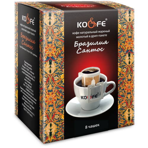 Молотый кофе KO&FE Бразилия Сантос, в дрип-пакетах, 8гр/8 шт