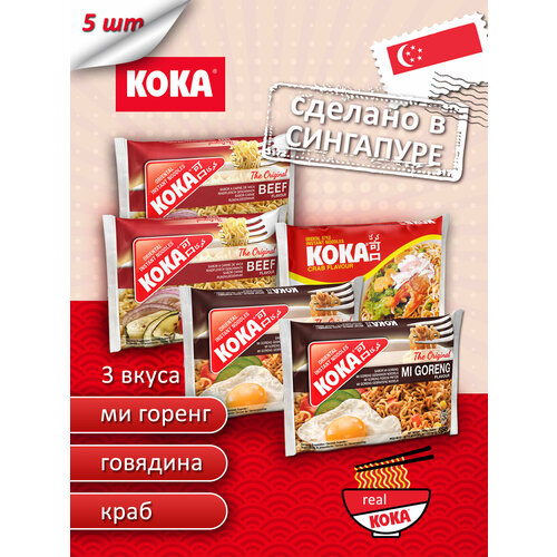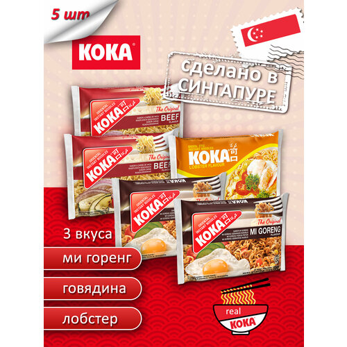 Лапша быстрого приготовления со вкусом говядины KOKA Original сингапур 5 шт в пакетах.