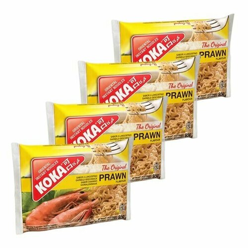 Лапша быстрого приготовления со вкусом креветок Ориджинал Koka, пачка 85 г х 4 шт