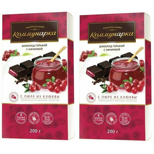 Шоколад "Коммунарка" горький с начинкой с пюре из клюквы, 200 гр. — 2 шт
