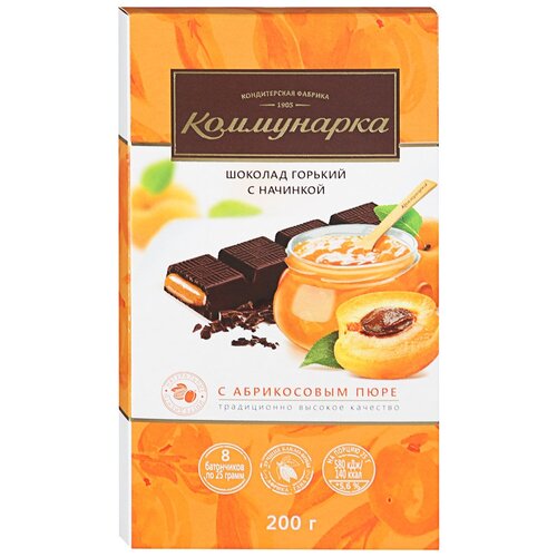 Шоколад горький Коммунарка с пюре из абрикоса пенал 200гр