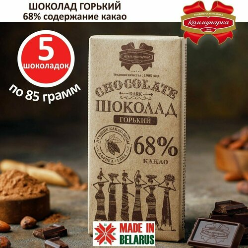 Шоколад горький, 5 шт по 85 г, темный шоколад с содержанием какао 68%, сладости на подарок