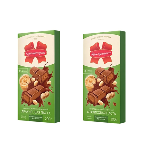 Шоколад коммунарка молочный с арахисовой пастой 2 шт. по 200гр.