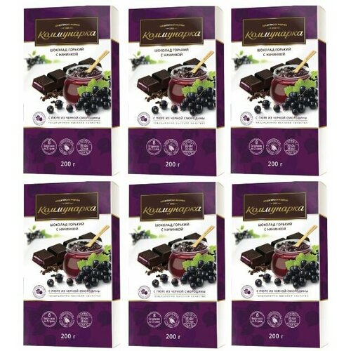 Шоколад Коммунарка Горький с пюре из черной смородины, 200гр — 6 штук
