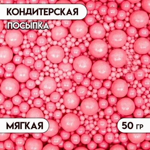 Кондитерская посыпка с мягким центром "Жемчуг", розовая, 50 г