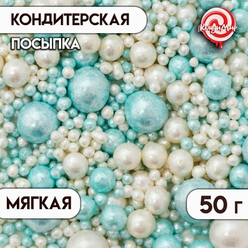 Посыпка с мягким центром "Жемчужинки" 50 г белый и бирюзовый